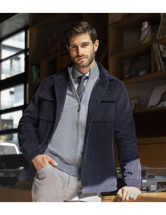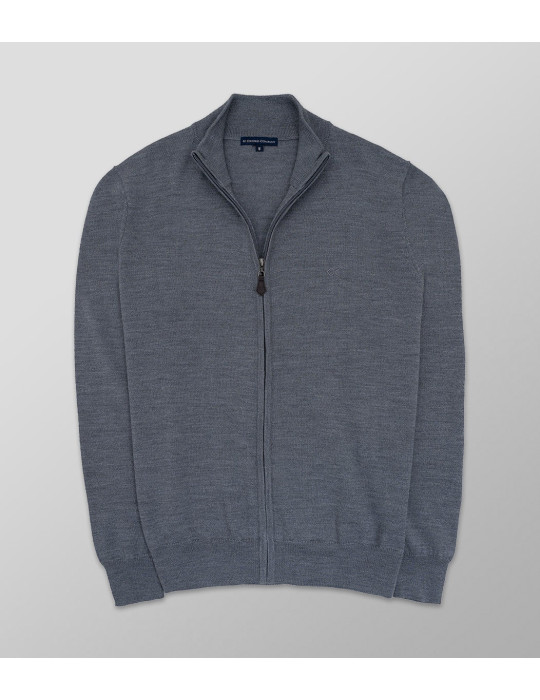 Πλεκτή ζακέτα μονόχρωμη γκρι - Regular Fit της συλλογής ΦΧ25. Σύνθεση: 100% Merinos.
