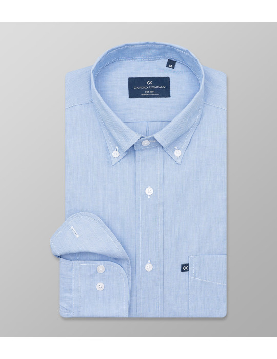 Sport πουκάμισο σιέλ -Regular Fit της συλλογής ΦΧ25. Γιακάς Button Down μακρύ μανίκι με μανσέτα απλή/1 κουμπί. Ύφασμα Fil a Fil - Σύνθεση 100% Cotton.
