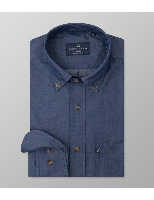 Sport πουκάμισο μπλε -Regular Fit της συλλογής ΦΧ25. Γιακάς Button Down μακρύ μανίκι με μανσέτα απλή/1 κουμπί. Ύφασμα Jean - Σύνθεση 100% Cotton.