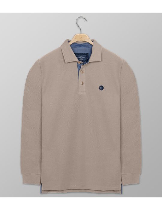 Polo μακρύ μανίκι μονόχρωμο μπεζ - Regular Fit της συλλογής ΦΧ25. Ύφασμα Piquet - Σύνθεση 100% Cotton.