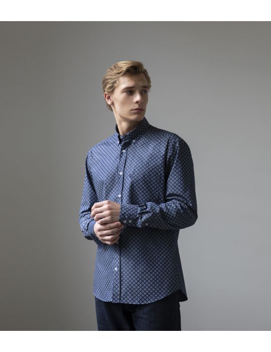 Sport πουκάμισο εμπριμέ -Slim fit της συλλογής ΦΧ25. Γιακάς Button down basic και μακρύ μανίκι με μανσέτα απλή/2 κουμπιά. Ύφασμα Jean - Σύνθεση 100% Cotton.