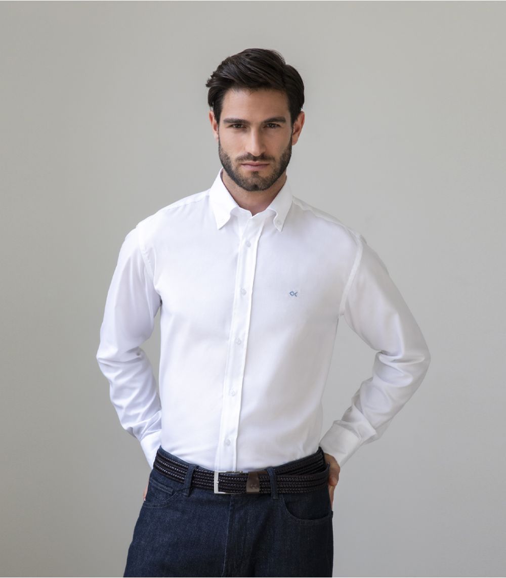 Sport πουκάμισο λευκό - Regular fit της συλλογής ΦΧ25. Γιακάς Button Down και μακρύ μανίκι με μανσέτα απλή/1 κουμπί.