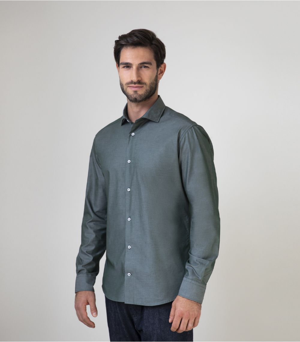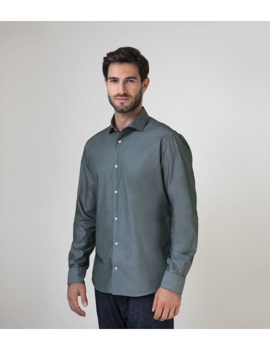 Sport πουκάμισο πράσινο σκούρο -Slim fit της συλλογής ΦΧ25. Γιακάς Romeo και μακρύ μανίκι με μανσέτα απλή/2 κουμπιά. Ύφασμα Twill - Σύνθεση 100% Cotton.
