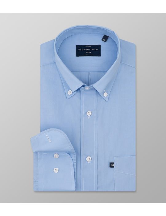 Outlet Sport πουκάμισο σιέλ -Regular Fit. Γιακάς Button Down μακρύ μανίκι με μανσέτα απλή/1 κουμπί. Ύφασμα Poplin - Σύνθεση 100% Cotton.