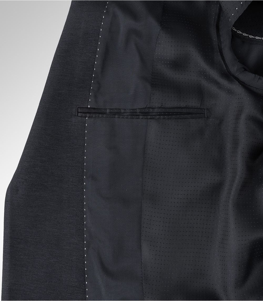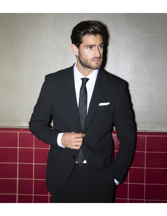 Jacket plain black slim fit collection AW25. Composition:  56%Viscose - 34%Nylon - 10%Elastane.