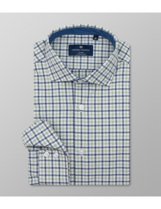 Outlet Checked Sport shirt  -Slim Fit. Collar Romeo and long sleeve with single cuff/ 2 buttons. Fabric Flannel - Composition 100% Cotton.