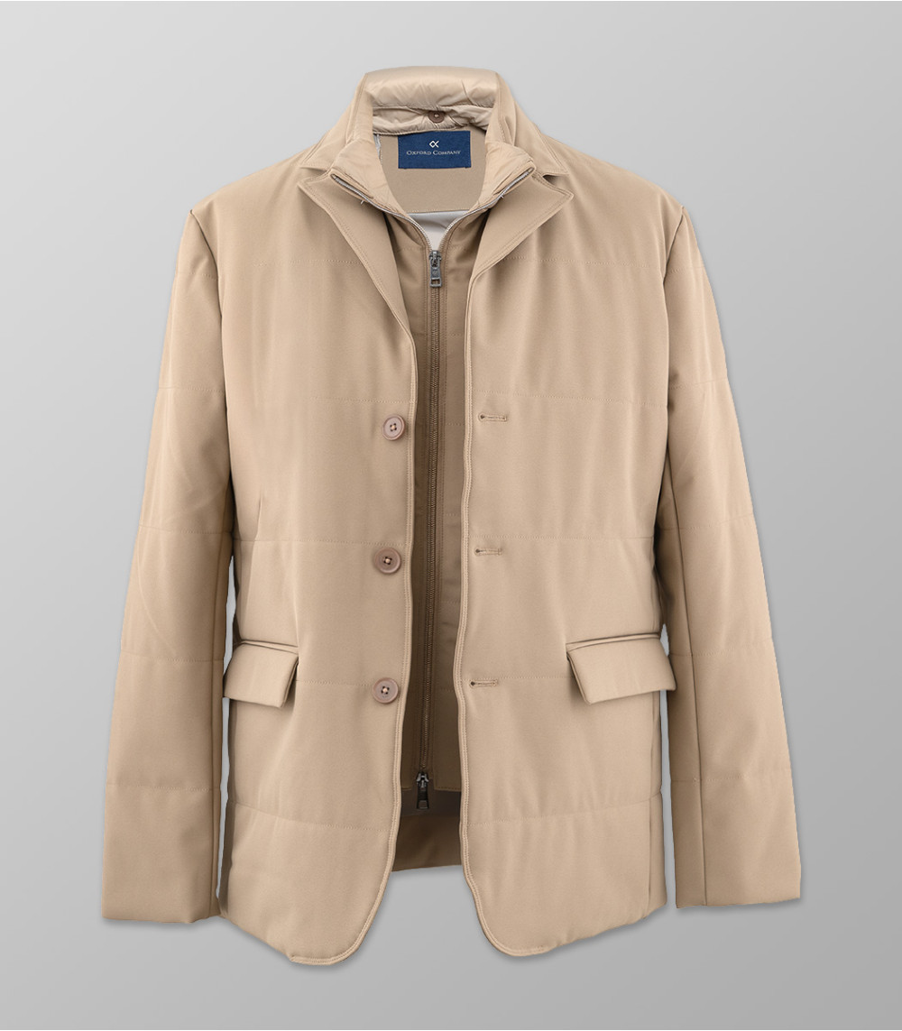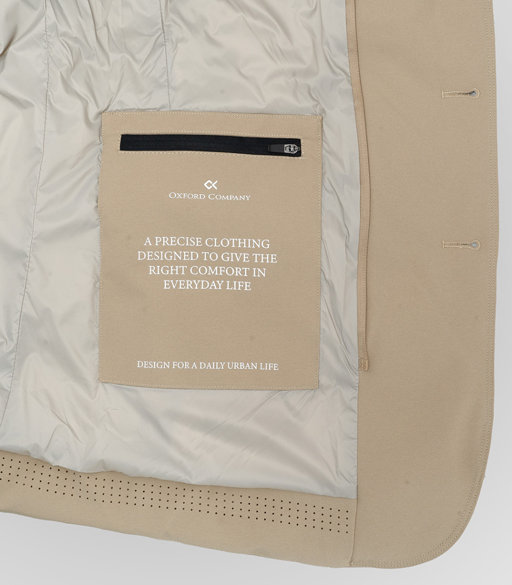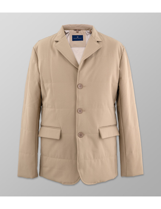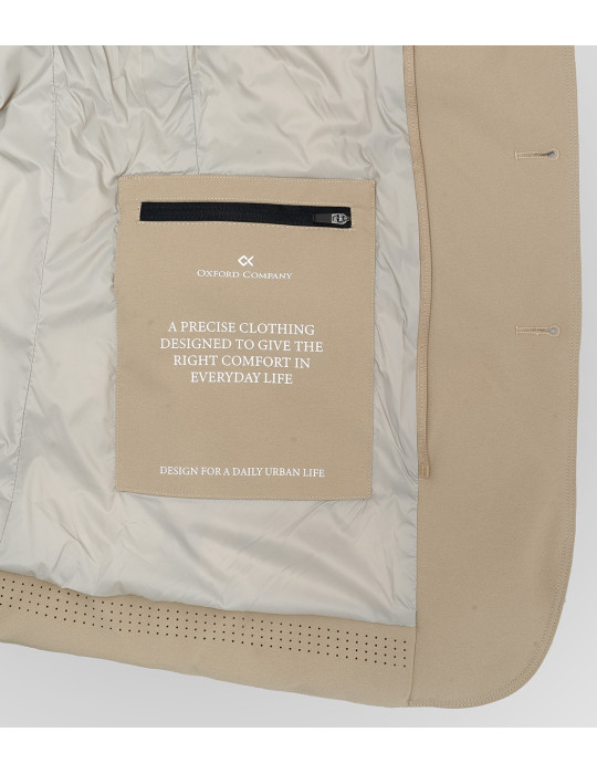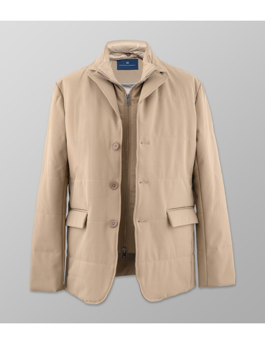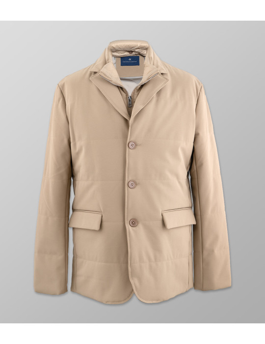 Outlet Jacket plain beige regular fit. Fabric : Gabardine - Composition: 60%Cotton -37% Tencel - 3%Elastane.