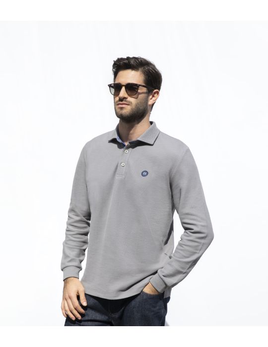 Polo long sleeve plain grey - Regular fit collection AW25. Fabric Piquet - Composition: 100% Cotton.