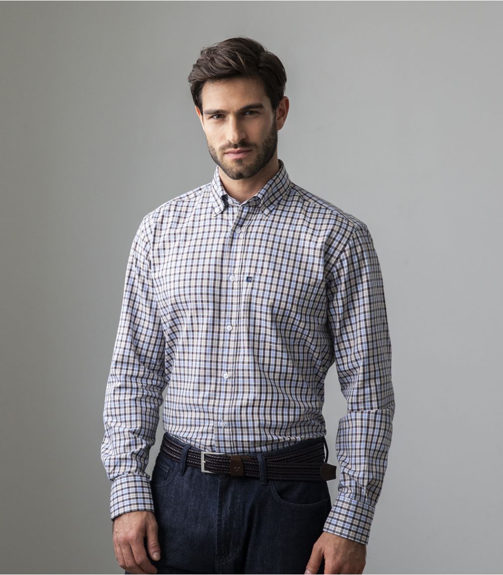 Sport Check shirt -Regular Fit AW25 collection. Collar Button Down and long sleeve with single cuff/ 1 button. Fabric Poplin - Composition 100% Cotton.