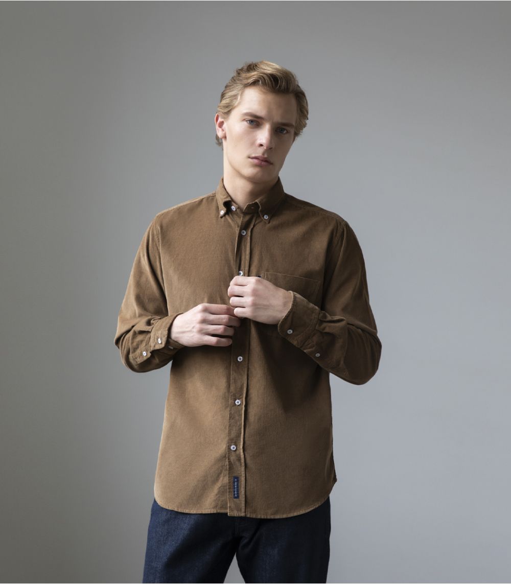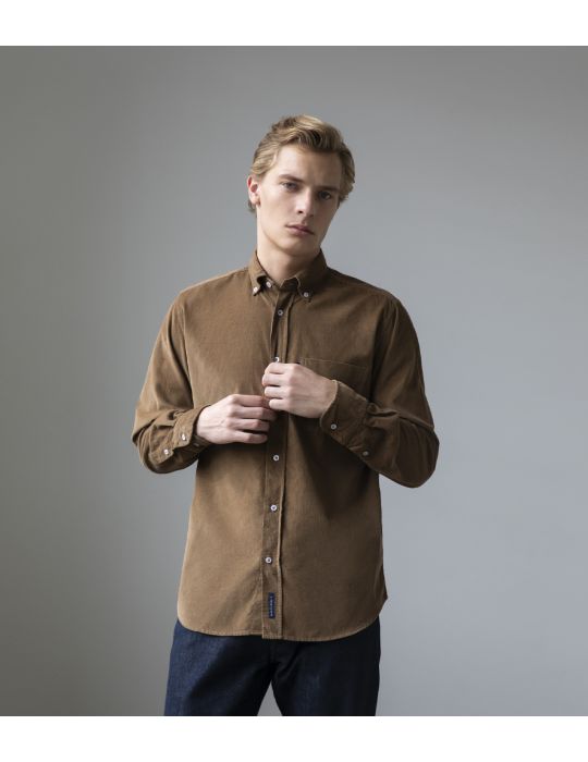 Sport shirt plain dark beige -Regular fit AW25 collection . Collar Button Down and long sleeve with single cuff/1 button. Fabric Corduroy  - Composition 100% Cotton.